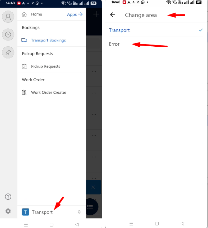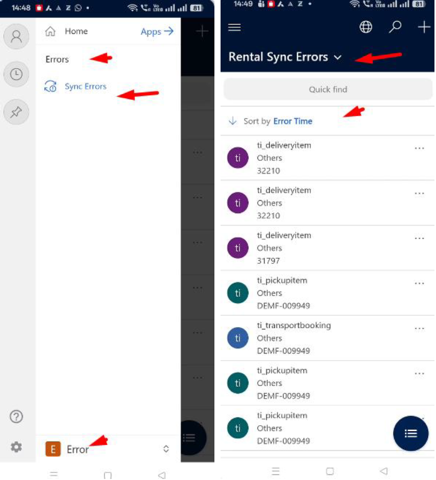The "My Active Sync Errors" screen was available in the FS app but not in the Transportation app. Users faced difficulties in locating and resolving sync errors in the Transportation app.
