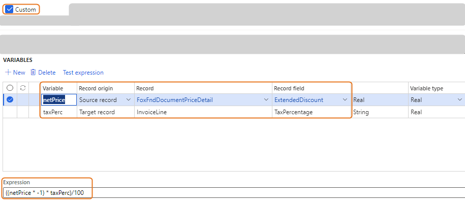 Note: You can test the created expression. To do so, click test expression. On the dialog, fill in the values of the variables and click Execute. |