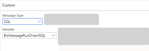 Select ‘BisMessageRunDirectSQL’. This handler class gets the data from the D365 F&SCM database and directly enters it into the external on/premises SQL database. |