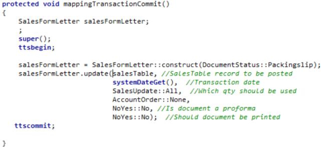 onMappingTransactionCommit | Commits the transaction on the target document. This is useful for posting actions, as all lines are inserted or updated and then committed to the database. |