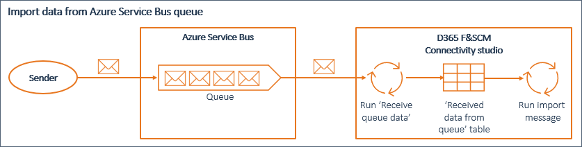 - Run import messages to read data from the 'Received data' table and import this data into D365 F&SCM. The import messages must have the 'Service Bus queue' connector as source connector.