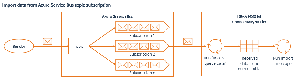 - Run 'Receive data' to receive data from a Service Bus topic subscription. The received data is added to the 'Received data' table in Connectivity studio. On receiving data from the Service Bus topic subscription, based on the Service Bus search definitions and settings on the received data, import messages are automatically assigned to the received data records.