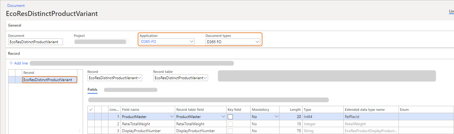- Add a record to the document for the EcoResDistinctProductVarinant table in D365 F&SCM.