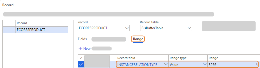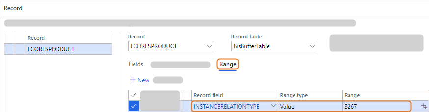 The source document record refers to the EcoResProduct table. However, you only want to migrate the product masters. Therefore, for the EcoResProduct record, define a range to limit the migration to the product masters only.