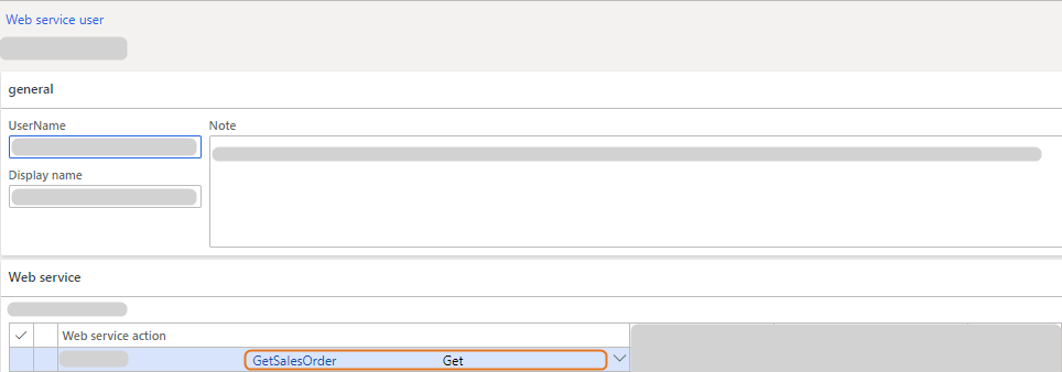 First, set up the web service user and link the web service action to the web service user: